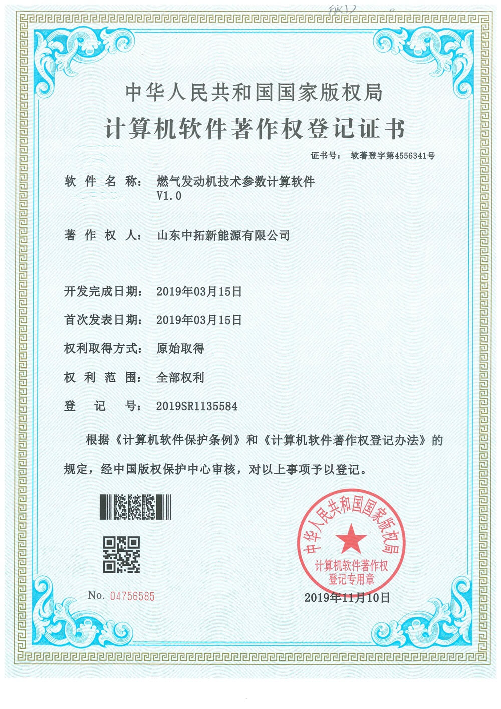 Gas engine technical parameter calculation software